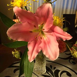 久々のお教室。ニューサイランの黒が格好良かったので強めのピンクとコントラストに。リンドウのくすみ紫と相まって渋めな感じに。 大きめの花材になると大きな花器と広いスペースが欲しくなる…