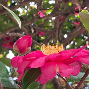 山茶花 今ではもう無い昔の実家 山茶花の生垣でした 地面をピンク色に覆うほどの花びらを 箒でかき集める母親の姿が重なります