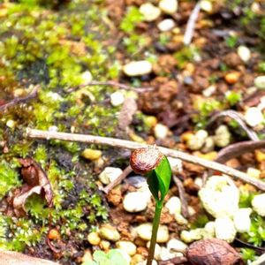 昨日投稿のシダらしきもの、足元をよくよく見ると、ホラ、シダの証しのような、くるくる🌀の新葉のようなものが!😆🎶 小さいですよ~!💓 また、気になるのが、下の方の葉っぱを突き抜けて苔の蒴が出ているように見えるんですけど。 こんなこと、ありですか?😅