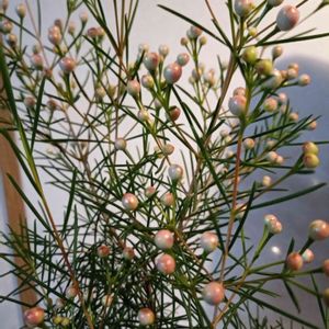 ワックスフラワー🏵️ 蕾を付け始めた👀 今育てているのは「スイート16」「マチルダ」「クリスタルパール」「ムーンデライト」「ダンシング・クイーン」 に、品種わからない白の大輪… お花屋さんでワックスフラワー切り花の品種を書いて売ってるのあまり見ないなと😕 そういえば千葉駅内のお店はピンクッション「アヨバサン」がサクセッションになってたな… まぁ間違いもあるよね、と😀