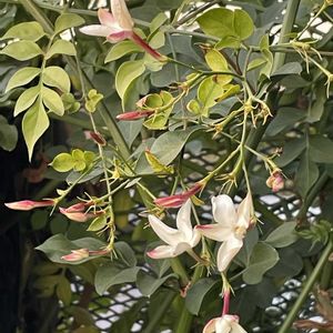 ᰔᩚ ᥫᩣ ジャスミンホワイトプリンセス 羽衣ジャスミンの改良種 モクセイ科ソケイ属 園芸品種 四季咲き性は嬉しいです 蕾は赤と白が混じって花びらの裏側は赤いです*ˊᵕˋ*