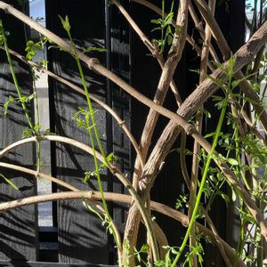 ジャスミン☀︎ホワイトプリンセス伸びだす。 隣の言いがかり婆さんが何か言い出す前に手当てせねば。