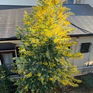 ベランダから見下ろした我が家のミモザさん🤣💕💕 真っ黄色❤️ 去年より1ヶ月早く開花してる🤩