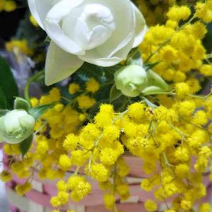 「ミモザ(アカシア)」の花言葉は「優雅」「友情」。 黄色のミモザの花言葉は「秘密の恋」 開花期は2月から4月 アカシアの花は香水の原料にもなるくらい香りの良い花 ヨーロッパでは春を告げる花として大変人気があるそうです。 アカシアの歌謡曲はたくさんありますね。 ○西田佐知子さん「アカシアの雨がやむときを」 アカシアの雨にうたれて このまま死んでしまいたい 他はレミオロメン「アカシアを」 松任谷由実さん「アカシア」などがあります。 皆さまにとりまして今日一日が秘密の恋が芽生える日でありますように・・・ ではまた!
