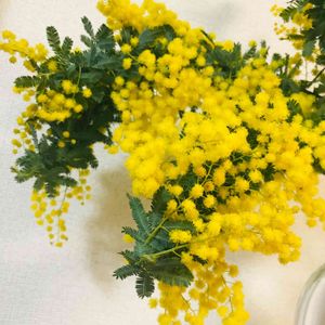 いつものお花屋さんにも寄ってきました🌸 フワフワ〜なミモザが可愛くって、ついお迎えしちゃいました🤣💗 *花言葉* 全体→優雅、友情 黄色のミモザ→秘密の恋