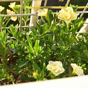 こんにちは☔️ 今日は寒くて雨‥ なので少し前に撮った写真です うちの庭のごちゃごちゃっぷりがバレますが 冬は太陽が低くて思ったより陽が当たらないと気づいて、高さを出すために花台を買いました! これでもまだ低いけど昼近くなれば太陽が当たります ビオラの鉢が増えちゃってあっという間にいっぱいになりました💦 もっといい感じに飾りたいと思いつつとりあえず置いてます😢 そして以前投稿した、スーパーベルダブルミルクレープの暴れっぷりがわかりますか?💦 流石にお花が少し傷んでしまうようになりましたがまだまだ咲いてます! 挿し芽のミリオンベルバターポップコーンもまだ咲いています 親株はもう終わってしまいましたが 挿し芽で今年も楽しめそうです😊