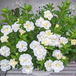 ☘️ PW 花苗アンバサダー2022 ☘️ スーパーベル ダブルミルクレープ 白の花弁の真ん中が黄色の花色です🤍💛🤍 八重咲きでとっても可愛い🌿🌿
