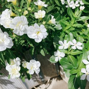 今年の夏に憧れたのは ブルーと白の爽やかな夏色でした。 初めて育てたPW スーパートレニア カタリーナ ブルーリバーと スーパーベル ダブルミルクレープ どちらも夏の玄関を彩ってくれたお花です。 今日はお庭で、夏の終わりの記念撮影 みんな大きくなりましたね♡ 8月下旬に切り戻した スーパーアリッサム フロスティナイトも 元気に葉っぱを茂らせ始めました。 夏から秋へ ❁.。.:*:. 移り変わる季節を これからも一緒に過ごしていきます ❁.。.:*:.。.✽.。.