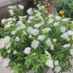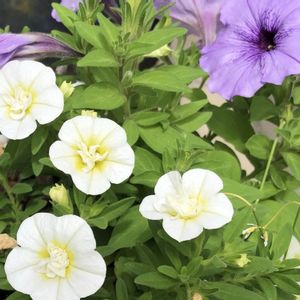 スーパーベル ダブルミルクレープ 春に植えてから、摘芯、そして切り戻し。 それでも、ひたすら上に伸び続け、 夢見たまあるい姿にはなりませんでした。 仲良くなれそうで なれないカリブラコア \(´O`/)°゜゚ナカヨクシテ でもね 一つ一つのお花は、実に愛らしく どんなお花とも仲良くなれる 優しいお花です♡