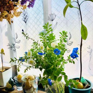 元気で増えてる2つの可愛い💕子を 一緒に飾りました^ ^ 青と白い色が爽やかです✨