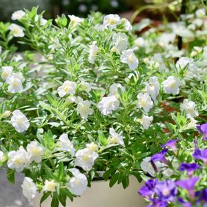 スーパーベル ダブルミルクレープ 豪華な花を咲かせる八重咲きで暑い夏でも元気に咲いてます🎶