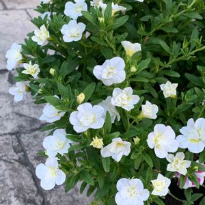 おはようございます🌅 PWさんのカリブラコア スーパーベルダブルミルクレープさん🤍 切り戻しの後に猛暑が到来し しばしお花をお休みしてましたが 最近になって咲いてきました✨