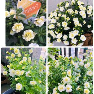今庭のお花たち 明日から本格的な雨☂️のようなので その前に😅 レスキュー苗のカリブラコア やっと咲いて ダブルミルクレープと判明😊 良かった良かった👍