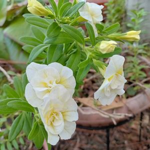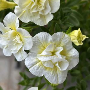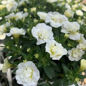 PWスーパーベル ダブルミルクレープ✨ カリブラコア 冬越しから咲き出しました♪ さすがPWさんの苗は強いですね💪 咲き始めは、クリーム色からホワイトに色変し、真ん中にクリームが残ります✨