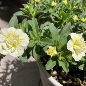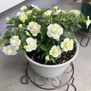 2025.5.7 “PW カリブラコア・スーパーベル・ダブルミルクレープ” 1番花が開花しました♪ 初めてのカリブラコア。 摘心して丸くさせたいのですが、もう少し咲いたら行いたいと思います。 鉢も大きくしなきゃだな。