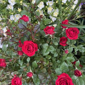 ミニバラが咲き出しました😆 2年目のスーパーベルは株幅80センチくらいビッグ クレマチスも咲き出して 花盛りももうすぐ 楽しみ〜