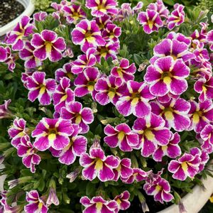 足利フラワーパーク 販売苗 1️⃣スーパーベル ダブルミルクレープ 2️⃣シレネ八重咲きピーチブロッサム 3️⃣5️⃣ペチュニア ステファニー 4️⃣カリブラコア レモンスライス