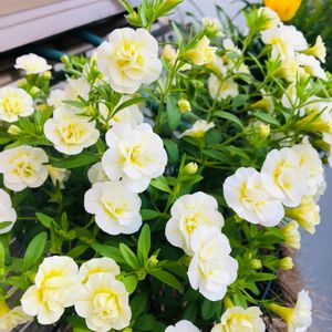 おはようございます(๑^ ^๑) ベランダのお花⁺*◞ 💛‧⁺✨˚꒰💛⤾·˚ スーパーベル ダブルミルクレープ 咲いてます 花びらの重なりがかわいい✨