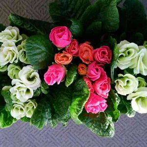 プレミアム バラ咲きジュリアンの マスカットのジュレ と ピーチフロマージュ プリムラジュリエとプリムラポリアンサとの交配種 サクラソウ科サクラソウ属 2017.1.28仲間入り