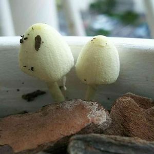 ミニトマトの鉢から 色白のキノコちゃん 食べても良いのかな〜(。・艸・)