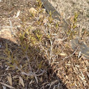 秋にしっかり根を張っていたのでイケるかも!…と思い切って地植えに切り替えてみたローズマリーさん(*^^*) 少し枝を折ってみたらちゃんと緑😊✌️ 葉っぱは変色しちゃってるけど、 寒冷地でも冬越し成功です!ε-(´∀`;)ホッ ウッドチップお布団効果抜群です!