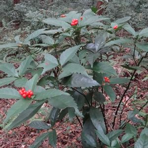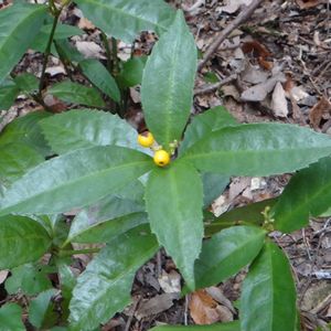 センリョウ(千両) センリョウ科センリョウ属 常緑小低木 黄色い実の方はキミノセンリョウ 12月1日 場所:豊橋市 赤岩山緑地公園