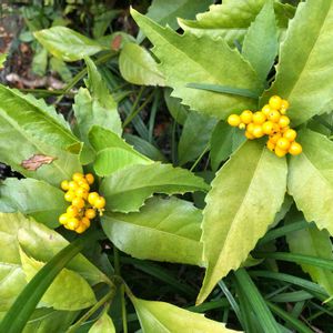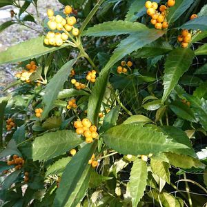 昨日友人と歩いていて庭木で大きく育っている黄色千両をに出会いました。