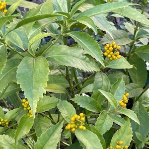 🌿🟡センリョウ(千両、仙蓼)🟡🌿 センリョウ科センリョウ属の常緑低木 淡い黄色の実が出来ています。この子は「キミノセンリョウ」ですね🟡🌿