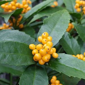 今日もお疲れさまでした😌💓 出勤前に5回目ワクチンの予約で、 電話が繋がらずバタバタしてました。 来月中旬に予約完了🎵 ~センリョウ(千両)~です💛 近所に赤と黄色のセンリョウを 見つけました🎵 月曜なので黄色をup します。 鮮やかな彩りで美しい✨