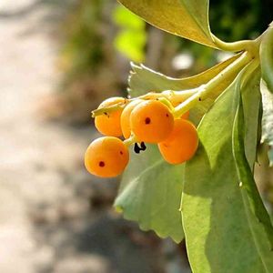 センリョウの黄色い実の品種で、キミノセンリョウ(黄実千両)です。 赤い実のセンリョウと並んでいることもあり、よく見かけることがあります😃