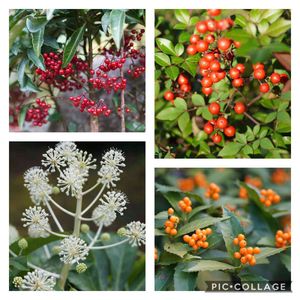 赤いセンリョウ🔴と黄色のセンリョウ🟡 そういえば、オレンジ色のセンリョウ🟠も見たことあるな🤔… もう少し濃くなるのかな❓