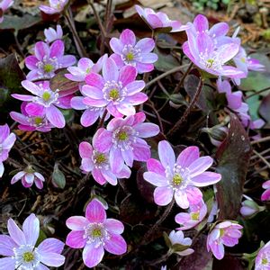 花の文化園に咲く 春の妖精たち 🌸ミスミソウ(雪割草)花色が多くて 心奪われます💓 出直してきて、良かった〜!🎶💕