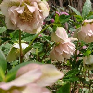 花の文化園では クリスマスローズ(キンポウゲ科)があちこちに咲いていますが、 クリスマスローズガーデンは今 圧巻の花盛り🌺🌱💮 株やこぼれ種から、毎年増えてるのでしょうか? 密ですよ〜! ただ、一重の花が多いのですがこのあたりは八重も少し〜柔らかなピンクのダブル🌺🌱が目を引きます 願わくば、展示会で見たような、変わった品種もみたいなぁ〜💓