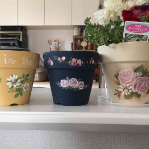 いいお天気になりました‼️ 今朝4時に目が覚めて、眠れなくなってしまった😅 することないし〜 そうだ❗️と思い立って、リメ鉢作り 小さなお花を書くつもりだったのに 大きくなっちゃった😆 出来上がったのは9時 早速お花を入れて撮影タイム 1つ形になりました。 春らしいのが1つ おうちに仲間入り❣️