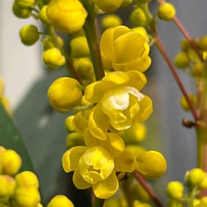 冬の寒い最中に黄色いお花が😊 ホソバヒイラキナンテン。 メギ科メギ属のお花。 つぼみが綻んできたところで出会いました。もうちょっとで開花🤗