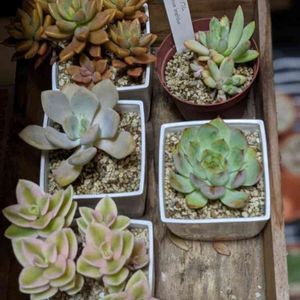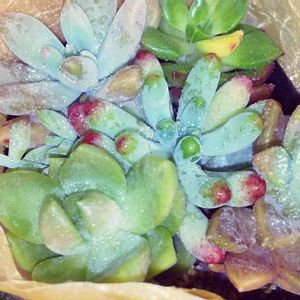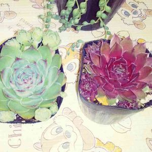 昨日ホムセンの隅っこにいた寄せ植えなんだけど、この真ん中のは乙女心ちゃんかな?