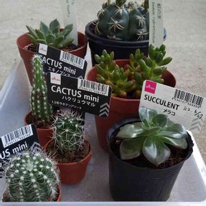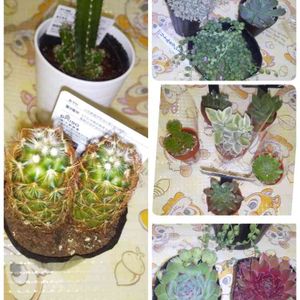GSのお仲間さんが(100円ショップでもサボテン・多肉植物あるよ)教えてくださったのに、、我が家の周りの店は全く無い😭 落ち込んでいる主人が見かねて❔ 下関ゆめタウンの中の100円ショップで、買ってきてくれました。嬉しかったです。 種類とか全く分からないけど、、とりあえず、3つ🌵+多肉植物買ったよ~って。 ありがとうございます。 大事に育てます✨💕 後ろ3つはこの前平田ナーセリーで購入したもの。 皆仲良く育ってね。