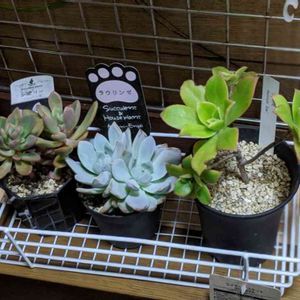 行く先々に多肉植物がたくさんあって、気に入った子たちをお迎えしました。 だ、大丈夫!私の時給2時間分くらい!でもほどほどに! 早く寄せ植えしたいなぁ 入れ物が足りないよ~