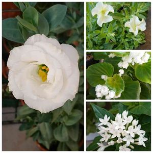 白い花たち🌱✨ 今日も暑くなりそうなので☀️😵💦涼しげな白い花を集めて見ました😊🌱 トルコキキョウ、サフィニア、ベゴニア、ペンタス🌱