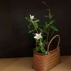 白の桔梗は最後かも 手提げ籠に入れてみました