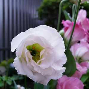 トルコききょう 真っ白と淡いグリーンが涼しげです。