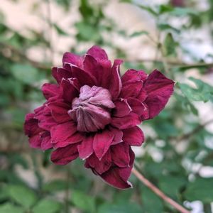 只今、帰宅。 連投してるクレマチス、だいぶ開きました。 去年は植え替え初年度だったから小さくて咲ききらなかったのか、今年は少し大きくて花弁も開いています🤗🎶🎶 🏷真っ赤な火曜日