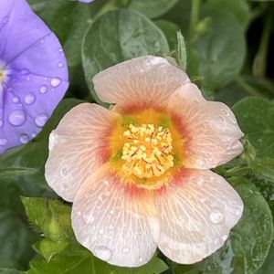 雨散歩☂️🚶♀️ ①マルバストラム🧡❤️ ②コンボルブルス💜 ③メドウアネモネ🤍 ④ホタルブクロ🤍🩷 夏のお花たちですね😊