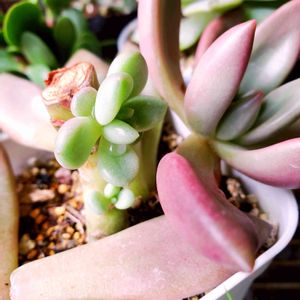 ミニベル錦 2年ぶりの投稿です😊 2年前子株が下から出てきてたので 大きな子をカットしました 子株の可愛い子が何個も 育ちましたよ🥰 数えたら8つもいます 二和園さん育ち懐かしや🥰 いつの間にかほんのりピンクがかって 紅葉してます🍁 可愛い子です😍 ルビードナもますます赤くなってます🥰