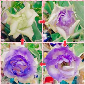 〈トルコキキョウ〉 昨日の朝、 クリーム色のつぼみ🥀だったのに 今日はパープル💜になり、 咲きました💜