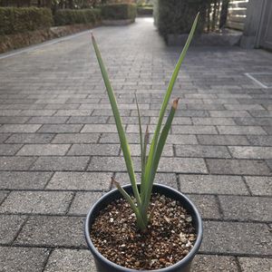 ■Furcraea longaeva ・フルクラエア ロンガエバ リューカデンドロン スターグリーンといっしょにお迎えしたロンガバエ。耐寒性はあるはずなのに、葉先はダメージを受けました。これも植え替え完了。早く大きくなりますように。 最高気温15℃、最低気温7℃ (フルクラエア・ロンガエバについて) フルクラエア・ロンガエバは、メキシコの乾燥地帯原産のリュウゼツラン科の植物です。耐寒性が強く、-10℃まで耐えられるため、日本の寒い地域でも屋外で越冬できます。 特徴 * 形状: 小苗の頃は細長い淡い緑色の葉を展開し、成長するとユッカのように下葉を枯らしながら幹立ちします。 * サイズ: 最大樹高は4メートルまで成長します。 * 耐寒性: 非常に強く、-10℃まで耐えられます。 * 日照: 日当たりを好みます。 * 水やり: 乾燥に強く、少なめの水やりで大丈夫です。 魅力 * ダイナミックな姿: 成長すると幹立ちし、非常に個性的な姿になります。 * 耐寒性: 寒さに強く、日本の多くの地域で屋外栽培が可能です。 * 乾燥に強い: 水やりを頻繁に行う必要がないので、手間がかかりません。 育て方 * 日当たり: 日当たりの良い場所で育てましょう。 * 水やり: 鉢植えの場合は鉢土が乾いてから水やりをします。