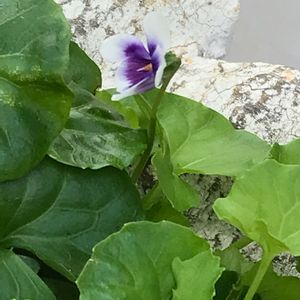パンダすみれ💮 スミレ科 別名 タスマニアビオラ 寒くなっても時々咲いて可愛いお花です。白い花弁に中心の紫💜の花びらがつぶれた様な形がパンダが座っている姿の様です😲😂💮😍💓 🌱葉がハート型 花言葉 「温和」「可憐」 「あなたを思ってやまない」
