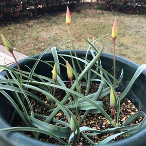 去年植えたミニチューリップの球根たち、無事に冬を越して、まもなく花が咲きそう。