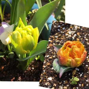 職場にミニチューリップが入荷してて 初めてみました🔰 斑入りの葉っぱに黄色いお花 これは小さな植物と 合わせて寄せ植えしたら 可愛いだろうなーと 早速作ってみました スカビオサは98円で メチャ安! 同じ系統の色合いで カンパニュラと共に かご寄せしてみました🎵 前回投稿した黄色い寄せ植えにも使ったミニチューリップは 周りが大きくて埋もれてしまったので、その残りの ミニチューリップを使って 埋もれないように…💦
