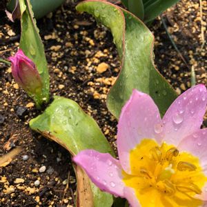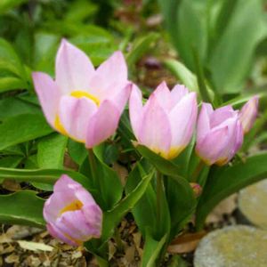ミニミニチューリップ🌷 地面すれすれに つぼみ。💟 秋植えのミックス球根 色も形も ミックス‼️ とっても 楽しめます。 まだ別の ミニミニちゃんも 咲きそうです。